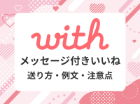 2025.10.29マッチングアプリ『with(ウィズ)』では、「いいね!」の上位版として「スペシャルいいね!(メッセージ付きいいね!)」が存在します。 「いいね!」にメッセージを添えられ、さらに相手のプロフィールに優先表示されるこの機能。公式からは「メッセージを付けるとマッチング率3倍」とアピールされています。 withの「スペシャルいいね(メッセージ付きいいね)!」の例文や送り方、メリット・デメリットなどを解説。 「スペシャルいいね!の詳しい効果を知りたい」「メッセージに何を書けばいいかわからない……」という方は、参考にしてください。