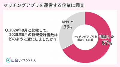 マッチング関連紹介サービス「出会いコンパス」を運営するナイル株式会社(本社:東京都品川区、 代表取締役社長:高橋飛翔、 以下ナイル)は 2025年8月22日から9月19日の期間中、 マッチングアプリを運営する企業22社を対象に、2025年現在のマッチングアプリ市場に関するアンケート調査を実施いたしました。