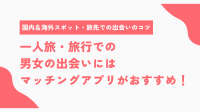 2025.10.24「一人旅で彼氏・彼女と出会った」「旅先で運命の人を見つけた」 実際の口コミを元に一人旅で本当に出会えるのか、おすすめのマッチングアプリ(お互いに興味を示した異性と連絡できるアプリ)・スポットを紹介します。 一人旅で出会った相手と距離を縮めるコツもあわせて紹介。